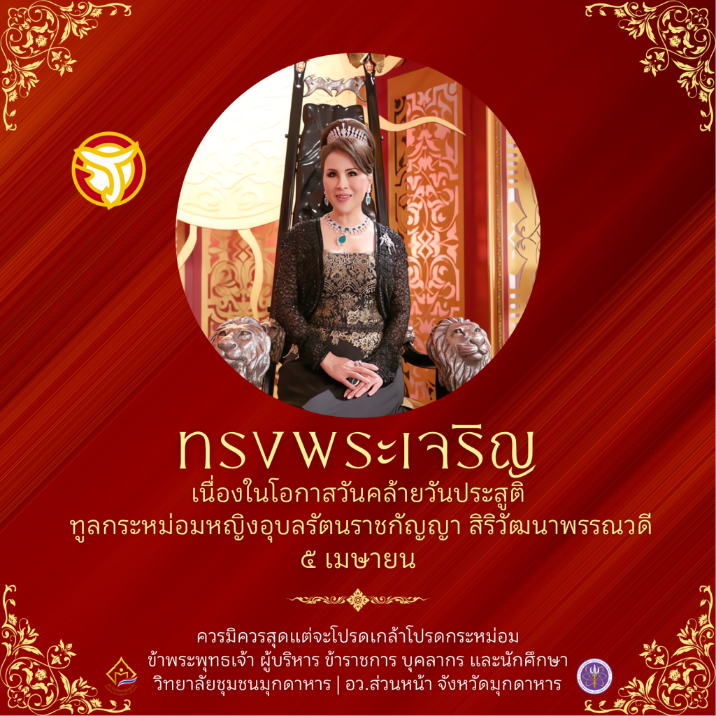 "วิทยาลัยชุมชนมุกดาหาร แหล่งเรียนรู้คู่ชุมชน สร้างโอกาสทางการศึกษา พัฒนาคนในท้องถิ่นสู่อนาคตที่ยั่งยืน"
