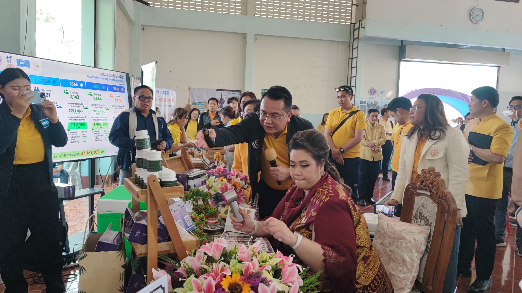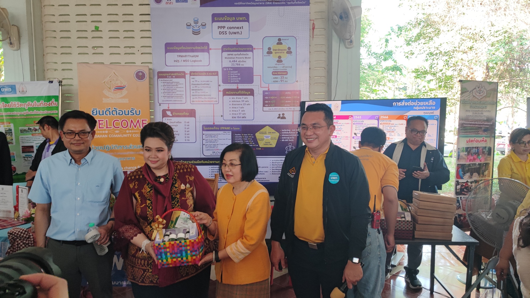 วันที่ 27 เมษายน 2568 วิทยาลัยชุมชนมุกดาหารนำโดยนางอัญญา ทวีโคตร รักษาราชการแทนผู้อำนวยการวิทยาลัยชุมชนมุกดาหาร ในฐานะ อว.ส่วนหน้า จังหวัดมุกดาหาร และ ดร.ทิวากร เหล่าลือชา รองผู้อำนวยการวิทยาลัยชุมชนมุกดาหาร จัดแสดงผลงาน หน่วยบริหารและจัดการทุนด้านการพัฒนาระดับพื้นที่ (บพท.) โครงการวิจัยการพัฒนาพื้นที่วิจัยเชิงยุทธศาสตร์เมืองชายแดนแบบบูรณาการพหุภาคี เพื่อขจัดความยากจน และสร้างโอกาสทางสังคม ในการลงพื้นที่ตรวจราชการในการประชุมคณะรัฐมนตรีอย่างเป็นทางการนอกสถานที่ ณ โรงเรียนคำเตยอุปถัมภ์ อำเภอเมืองนครพนม จังหวัดนครพนม และติดตามการตรวจราชการในพื้นที่กลุ่มจังหวัดภาคตะวันออกเฉียงเหนือตอนบน 2 ของนางสาวศุภมาส อิศรภักดี รัฐมนตรีว่าการกระทรวงการอุดมศึกษา วิทยาศาสตร์ วิจัยและนวัตกรรม